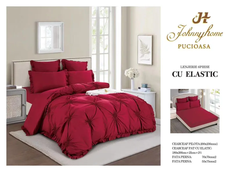 Lenjeria pentru pat dublu cu 6 piese este compatibila cu paturi care au saltelele cu urmatoarele dimensiuni: