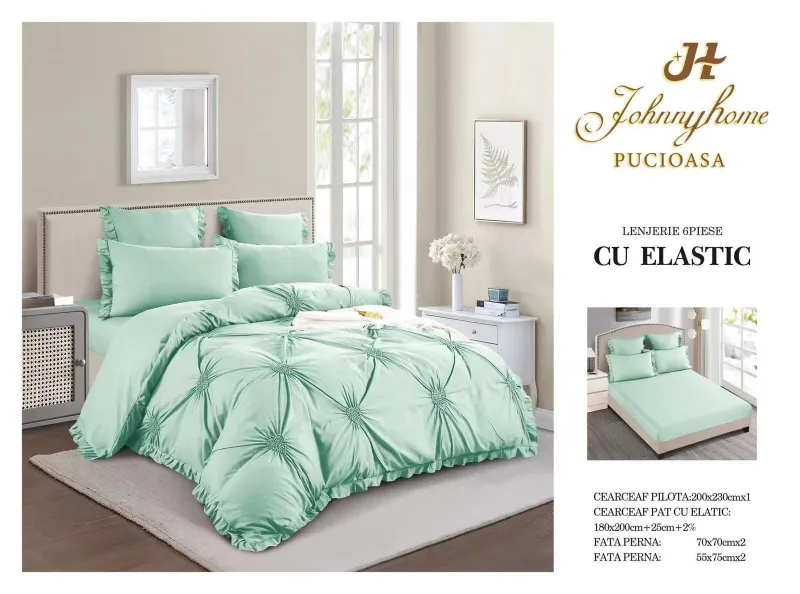 Lenjeria pentru pat dublu cu 6 piese este compatibila cu paturi care au saltelele cu urmatoarele dimensiuni:
