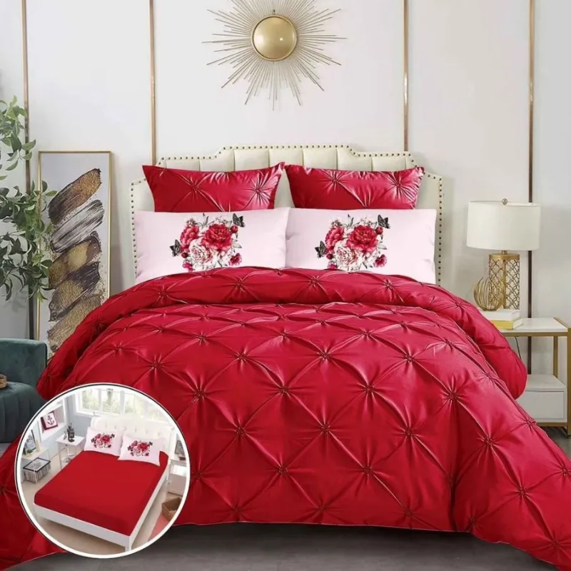 Lenjerie de pat cu Pliuri Elegante din finet,Pat dublu,Rosu-CH7