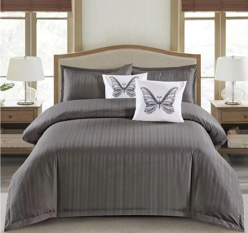 Lenjerie de pat dublu din damasc finetat, linear (tesatura din fabrica, ci nu imprimata, cu dunga de 1 cm grosime), confectionata din bumbac 70% + 30% poliester, cu 6 piese, folosita cel mai mult in regimul hotelier, datorita simplitatii si calitatii extraordinare. Materialul are un aspect usor lucios pentru o nota de eleganta si rafinament, datorita tesaturii speciale. Damascul este recunoscut pentru rezistenta sa in timp la nenumarate spalari, nemodificandu-si aspectul. Damascul finetat, este o tesatura noua, din bumbac 70% + 30% poliester, tipul tesaturii finet, ce revolutioneaza piata datorita calitatii superioare, avand un aspect luxos, foarte putin lucios, cu o textura fina, moale si catifelata. Acest material revolutionar, nu necesita calcare! Echipeaza-ti dormitorul cu o lenjerie fina ca cea a hotelurilor de 5 stele! Ofera-ti clipe de rasfat la tine acasa! Lenjeria este ambalata in husa de plastic, transparenta ce poate fi folosita si pentru pastrarea ei. - Grosime material: 130 gr/m2