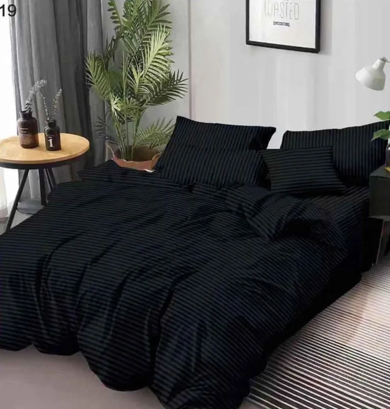 SUPER ELEGANT PUCIOASA Lenjerie de pat Damasc, Pat 2 Persoane, 6 Piese,Negru-DP20 + CADOU