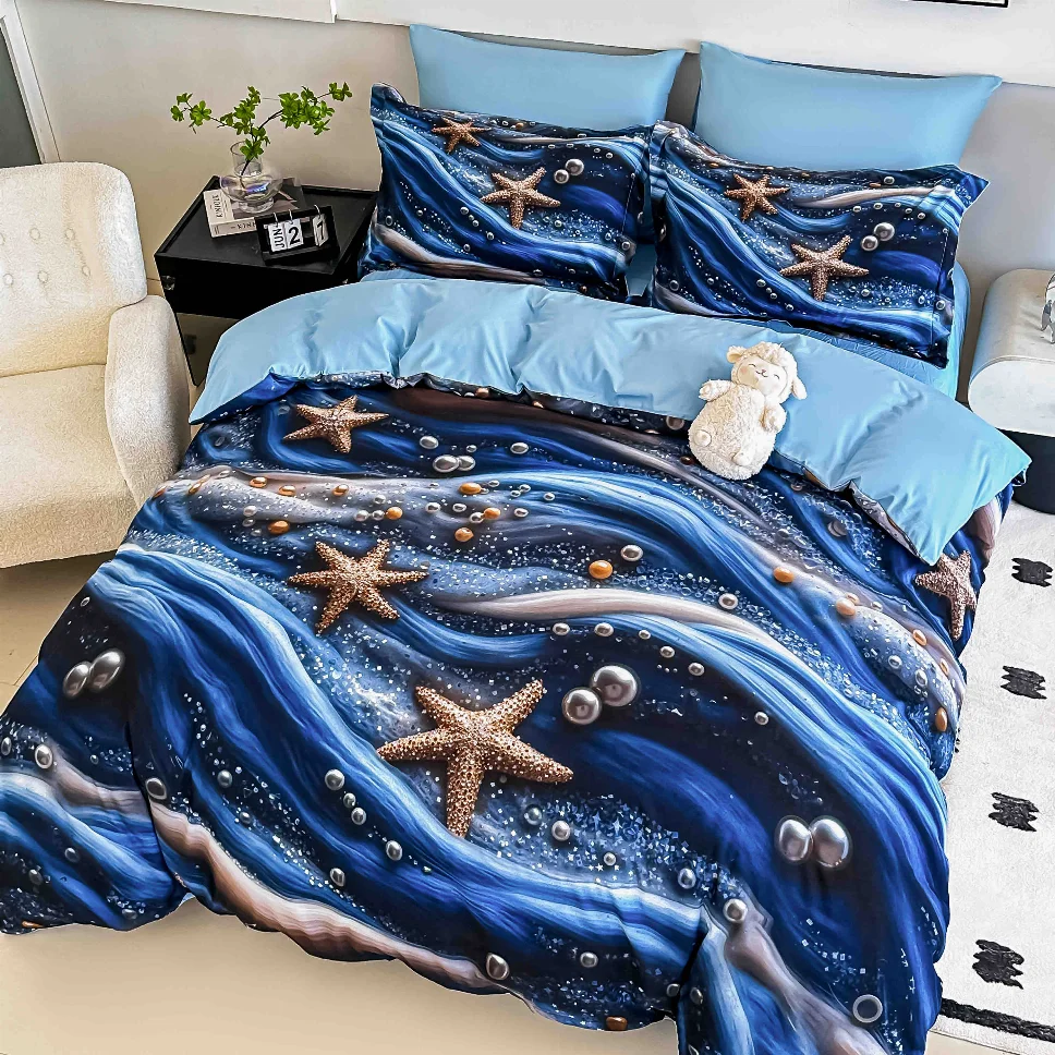 JOJO HOME Lenjerie de pat din finet, albastre cu stele de mare-LD16