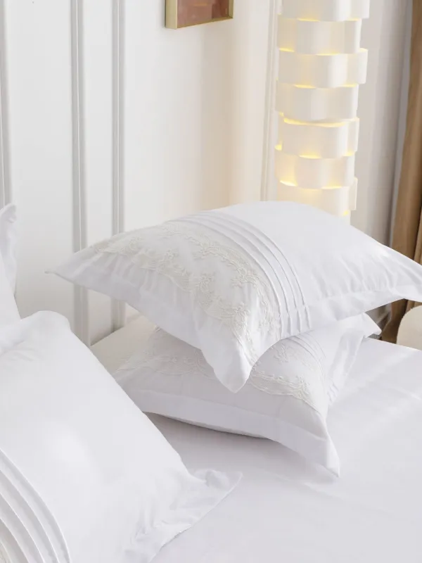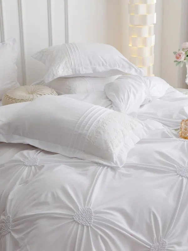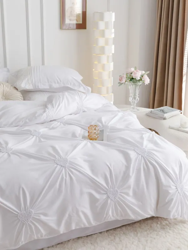 JOJO HOME Lenjerie de pat din finet, cu pliuri si inimioare brodate,Alb-BR4