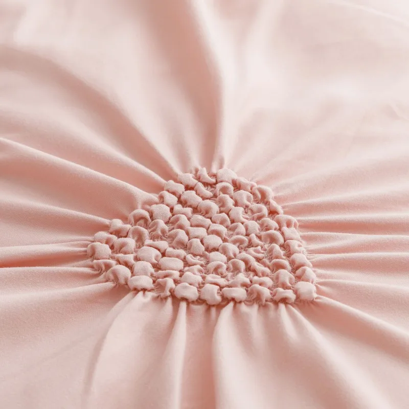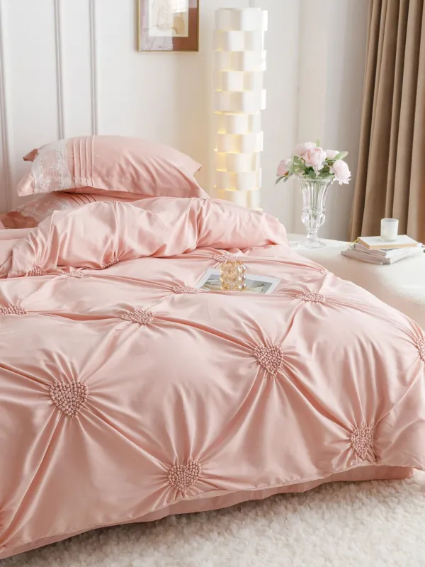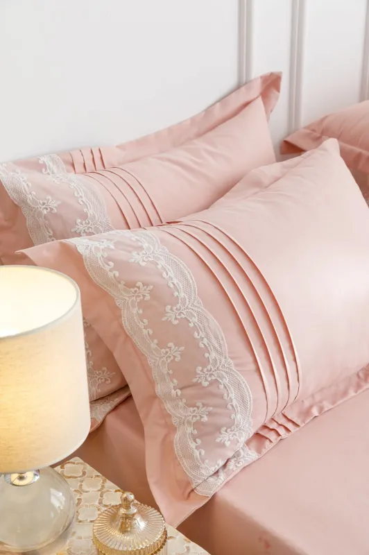 JOJO HOME Lenjerie de pat din finet, cu pliuri si inimioare brodate,Piersica-BR7