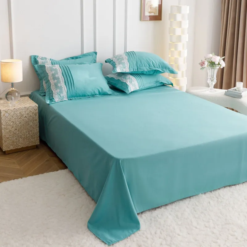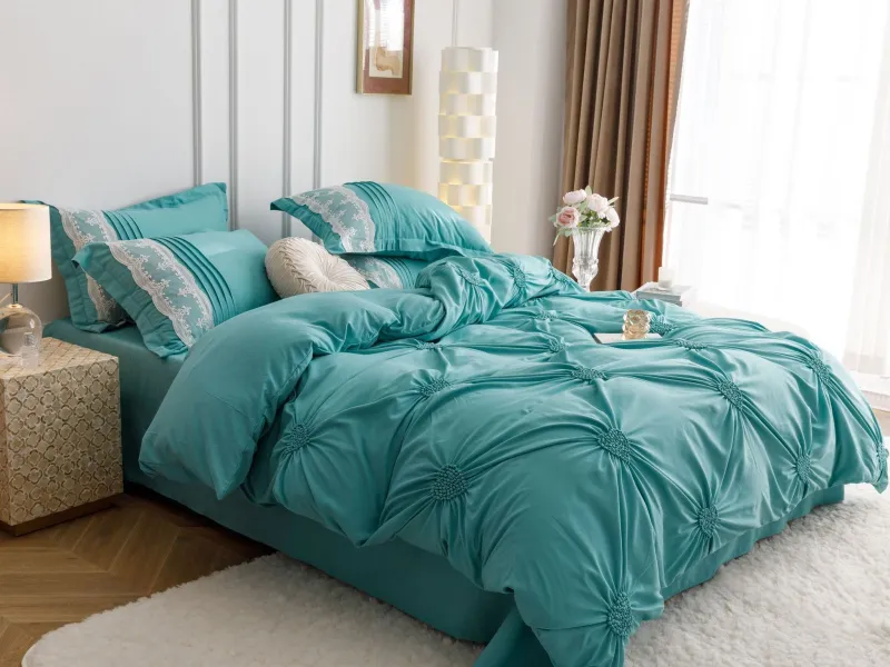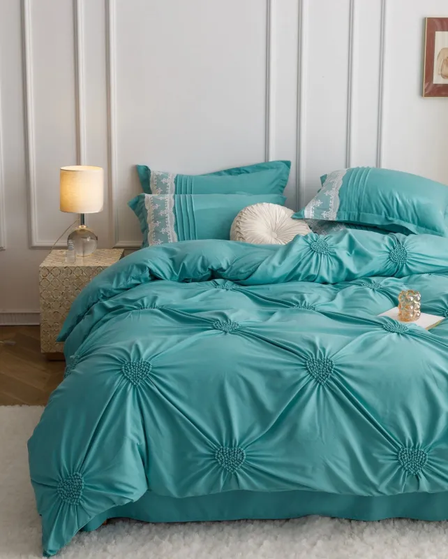 JOJO HOME Lenjerie de pat din finet, cu pliuri si inimioare brodate,Turcoaz-BR13