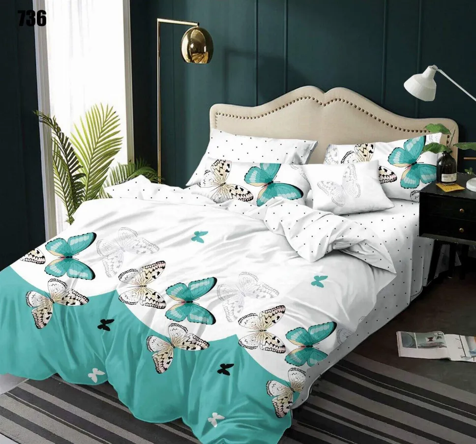 Cu lenjeria Lenjerie de pat Finet 6 piese, alb cu fluturi turcoaz si negri-LP736, transformi dormitorul tău într-o oază de confort și rafinament. Acest set complet, format din 6 piese, este creat dintr-un material textil special tratat pentru a-ți oferi o senzație unică de finețe la atingere și o rezistență de lungă durată.