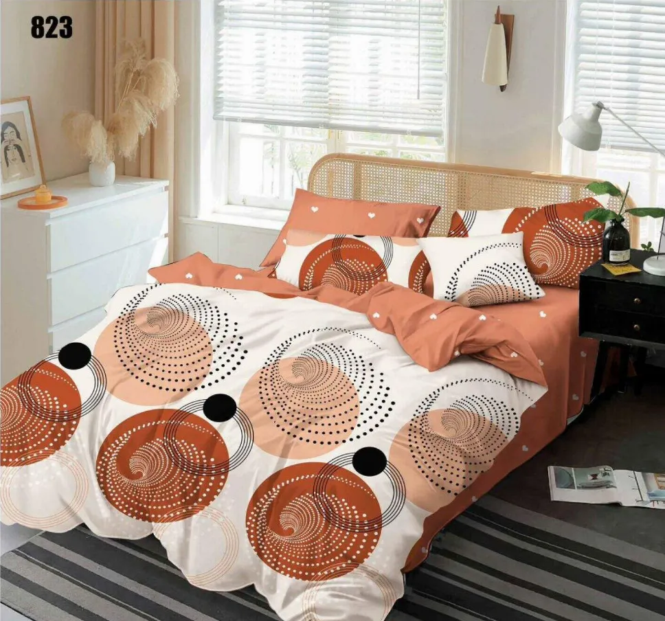 Lenjerie de pat Finet 6 piese, alb cu forme rotunde maronii-LP823 - Descoperă confortul și rafinamentul oferite de acest set de lenjerie de pat din finet, format din 6 piese. Colecția este realizată dintr-un material textil tratat special, conferind țesăturii o senzație moale la atingere și o durabilitate remarcabilă în timp.
