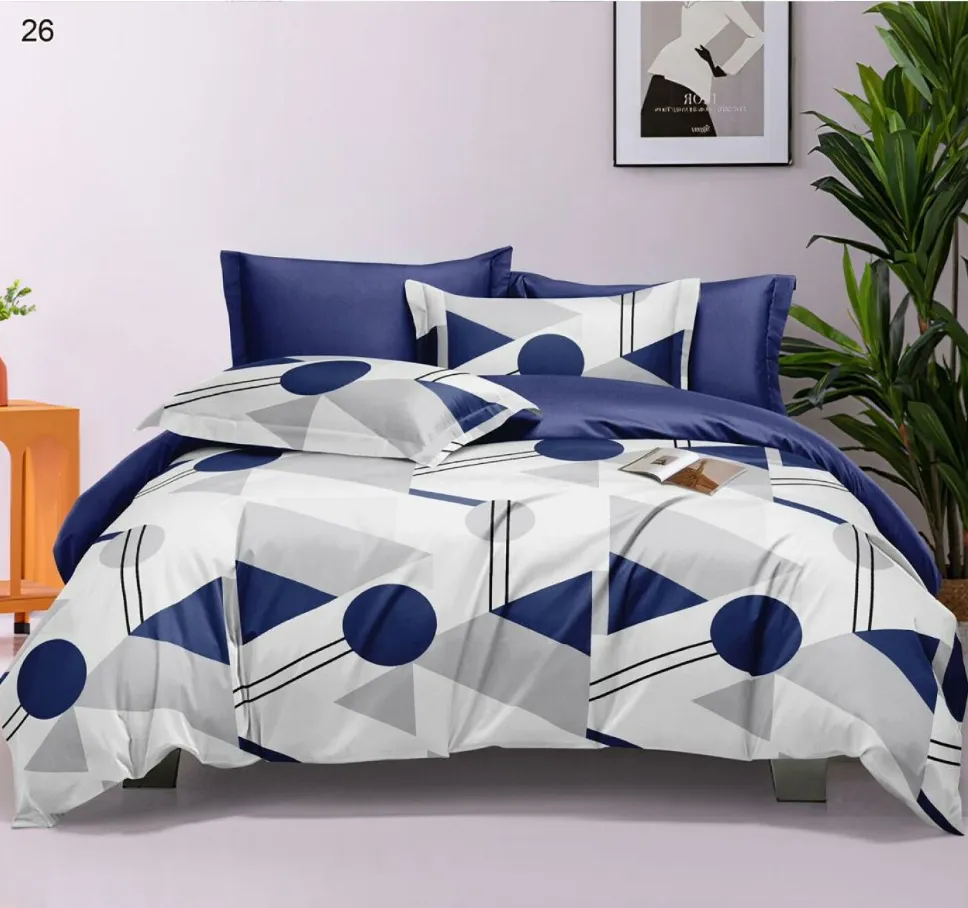 Cu lenjeria Lenjerie de pat Finet 6 piese, albastru cu triunghiuri și cercuri gri-LP26, transformi dormitorul tău într-o oază de confort și rafinament. Acest set complet, format din 6 piese, este creat dintr-un material textil special tratat pentru a-ți oferi o senzație unică de finețe la atingere și o rezistență de lungă durată.
