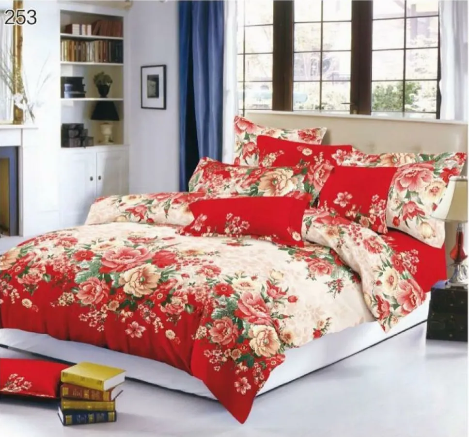 SUPER ELEGANT PUCIOASA Lenjerie de pat Finet 6 piese, roșu cu flori bogate-LP253