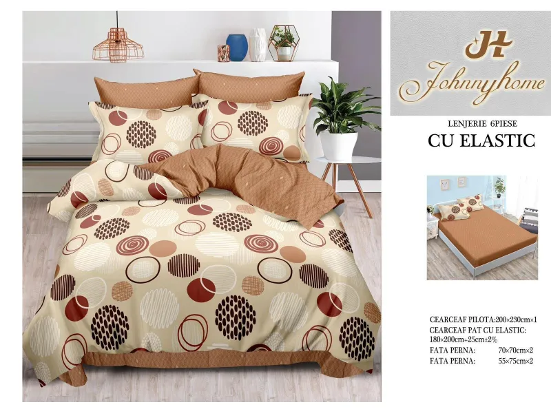 Lenjerii de pat Finet 6 piese cu Elastic- ,descoperă confortul și rafinamentul oferite de setul de lenjerie de pat tip finet, format din 6 piese, într-o nuanță elegantă. Această colecție excepțională este realizată dintr-un bumbac tratat special, conferind tesaturii sale o senzație moale și durabilitate remarcabilă în timp. Este alegerea perfectă pentru a-ți menține patul mereu proaspăt și impecabil.