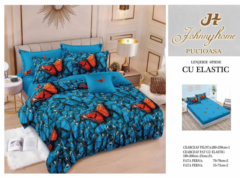 Lenjerii de pat Finet 6 piese cu Elastic-T295 descoperă confortul și rafinamentul oferite de setul de lenjerie de pat tip finet, format din 6 piese, într-o nuanță elegantă. Această colecție excepțională este realizată dintr-un bumbac tratat special, conferind tesaturii sale o senzație moale și durabilitate remarcabilă în timp. Este alegerea perfectă pentru a-ți menține patul mereu proaspăt și impecabil.