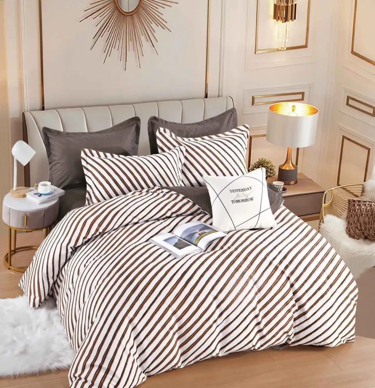 JOJO HOME Lenjerie de pat,6 Piese, finet,Alb/Gri cu imprimeu dungat-FJ222