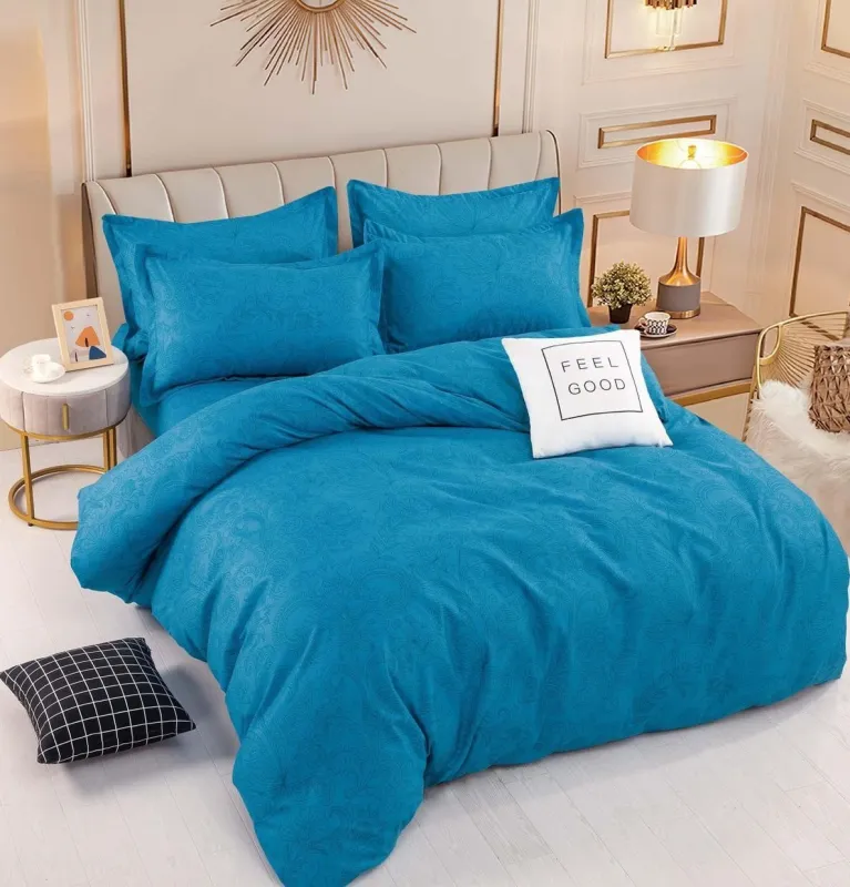 JOJO HOME Lenjerie de pat,6 Piese, finet,Turcoaz cu frunzulite-FJ163