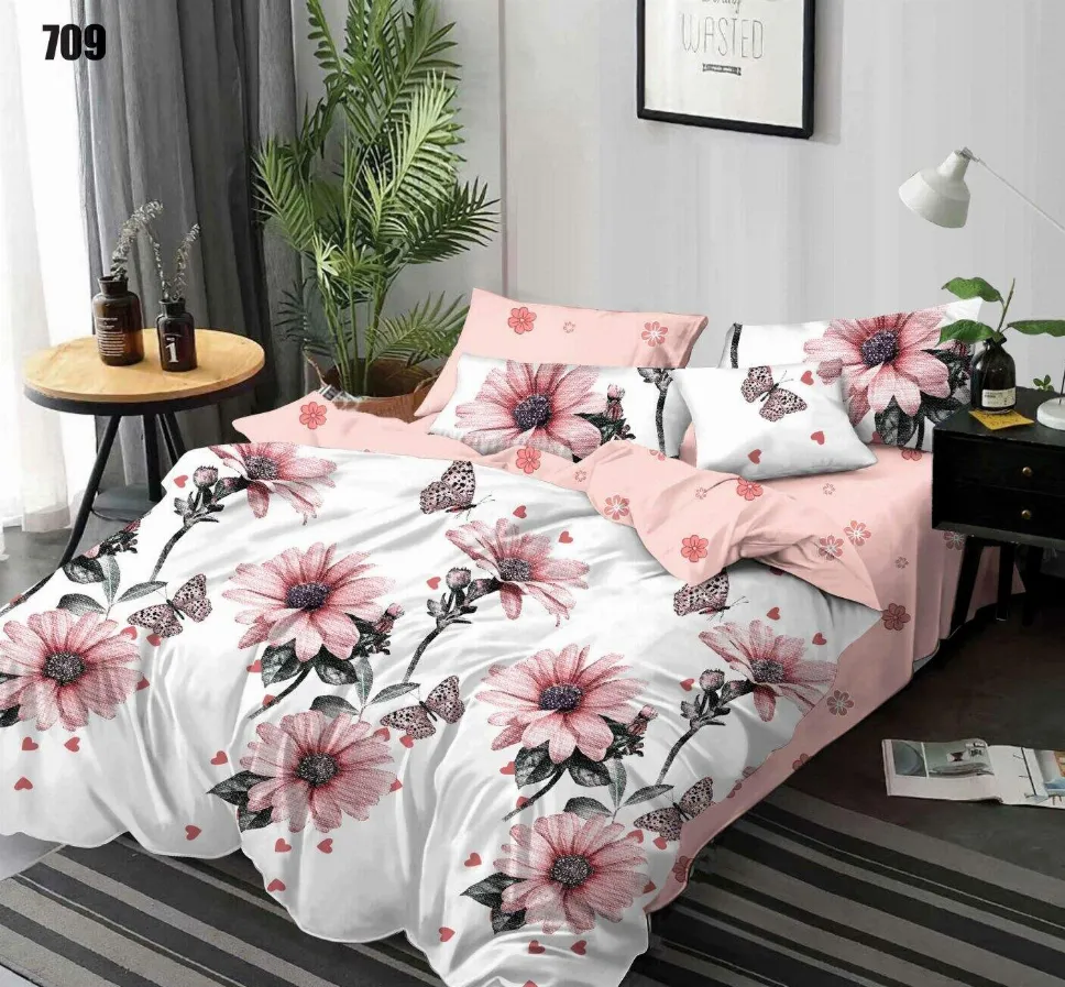 Lenjerie de pat Finet 6 piese, alb cu flori roz si fluturi-LP709 - Descoperă confortul și rafinamentul oferite de acest set de lenjerie de pat din finet, format din 6 piese. Colecția este realizată dintr-un material textil tratat special, conferind țesăturii o senzație moale la atingere și o durabilitate remarcabilă în timp.