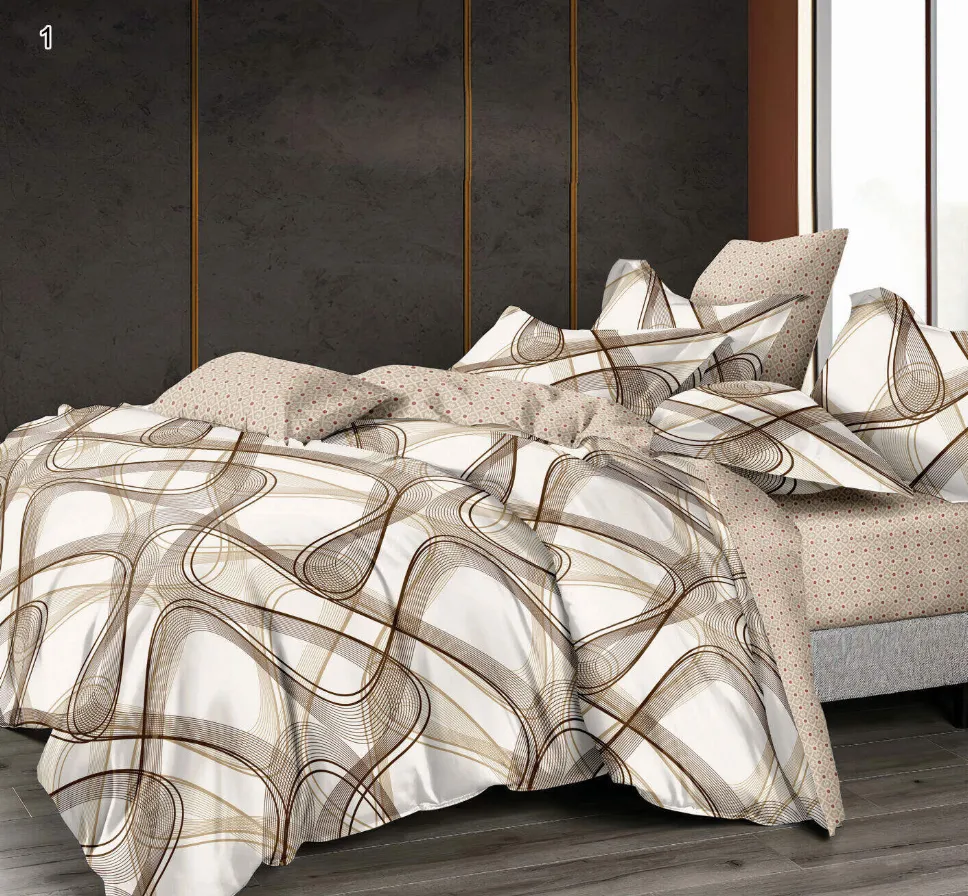 Lenjerie de pat Finet 6 piese, alb cu linii maro abstracte-LP1 - Descoperă confortul și rafinamentul oferite de acest set de lenjerie de pat din finet, format din 6 piese. Colecția este realizată dintr-un material textil tratat special, conferind țesăturii o senzație moale la atingere și o durabilitate remarcabilă în timp.