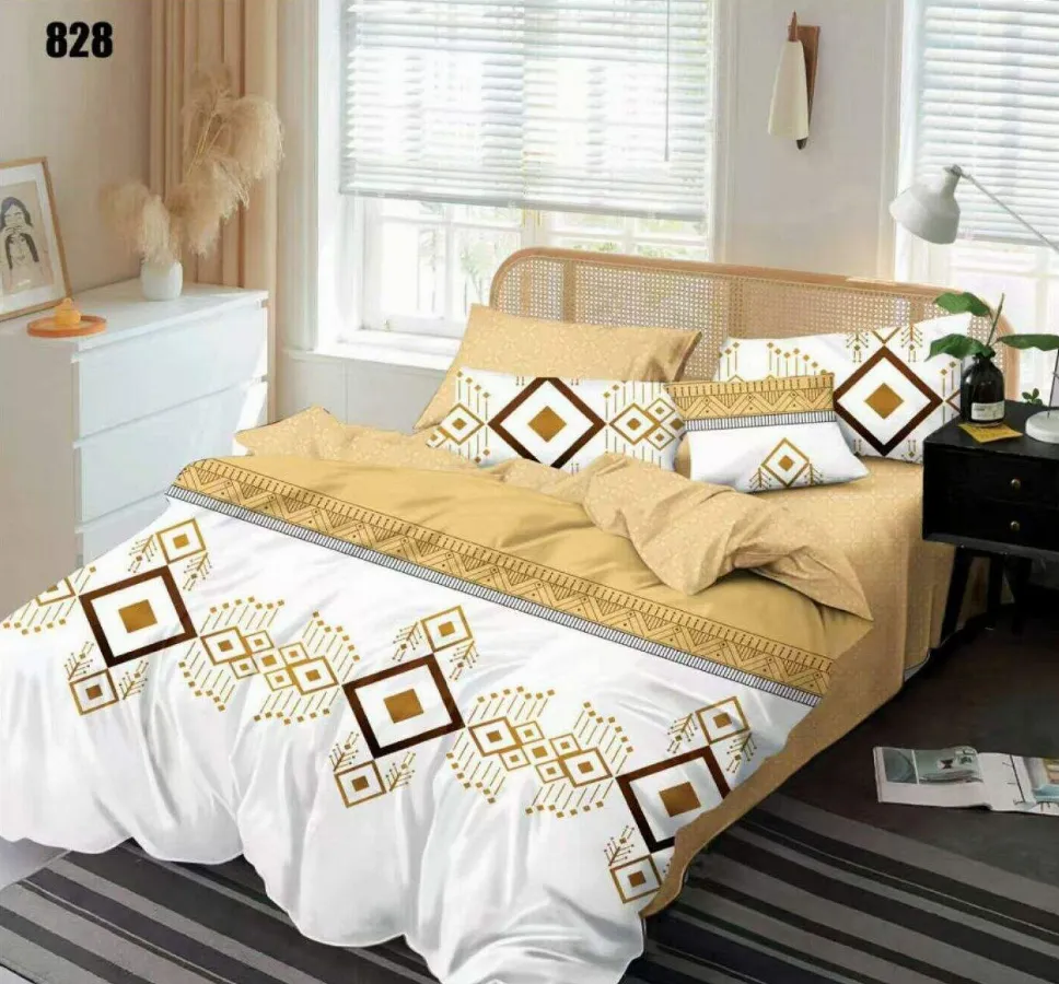 Lenjerie de pat Finet 6 piese, alb cu modele geometrice aurii-LP828 - Descoperă confortul și rafinamentul oferite de acest set de lenjerie de pat din finet, format din 6 piese. Colecția este realizată dintr-un material textil tratat special, conferind țesăturii o senzație moale la atingere și o durabilitate remarcabilă în timp.