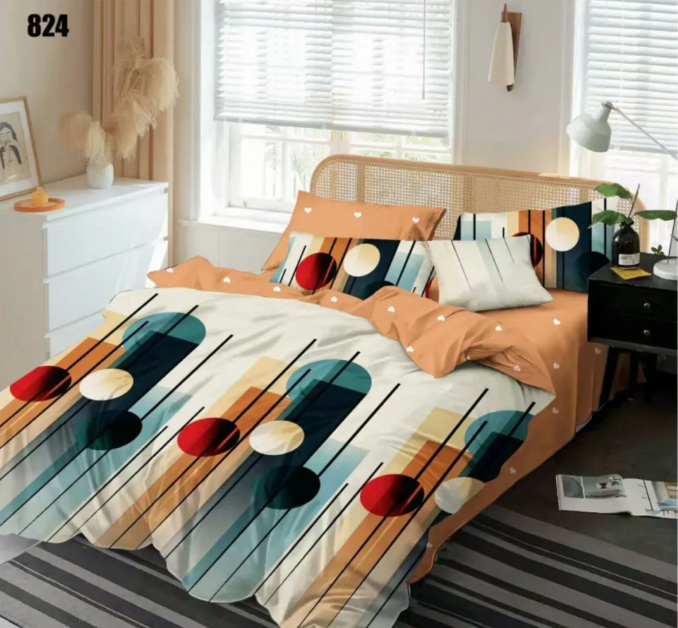 Lenjerie de pat Finet 6 piese, bej cu forme geometrice abstracte-LP824 - Descoperă confortul și rafinamentul oferite de acest set de lenjerie de pat din finet, format din 6 piese. Colecția este realizată dintr-un material textil tratat special, conferind țesăturii o senzație moale la atingere și o durabilitate remarcabilă în timp.