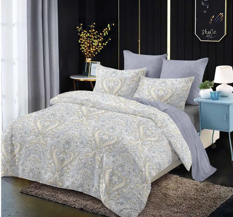 PRIMAVARA Lenjerie de pat Finet 6 piese Primavara,Gri/Lila cu floricele-LC178