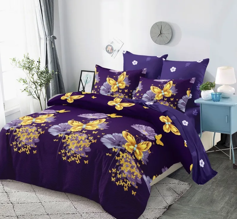PRIMAVARA Lenjerie de pat Finet 6 piese Primavara,Mov cu Fluturi,aurii-LC177