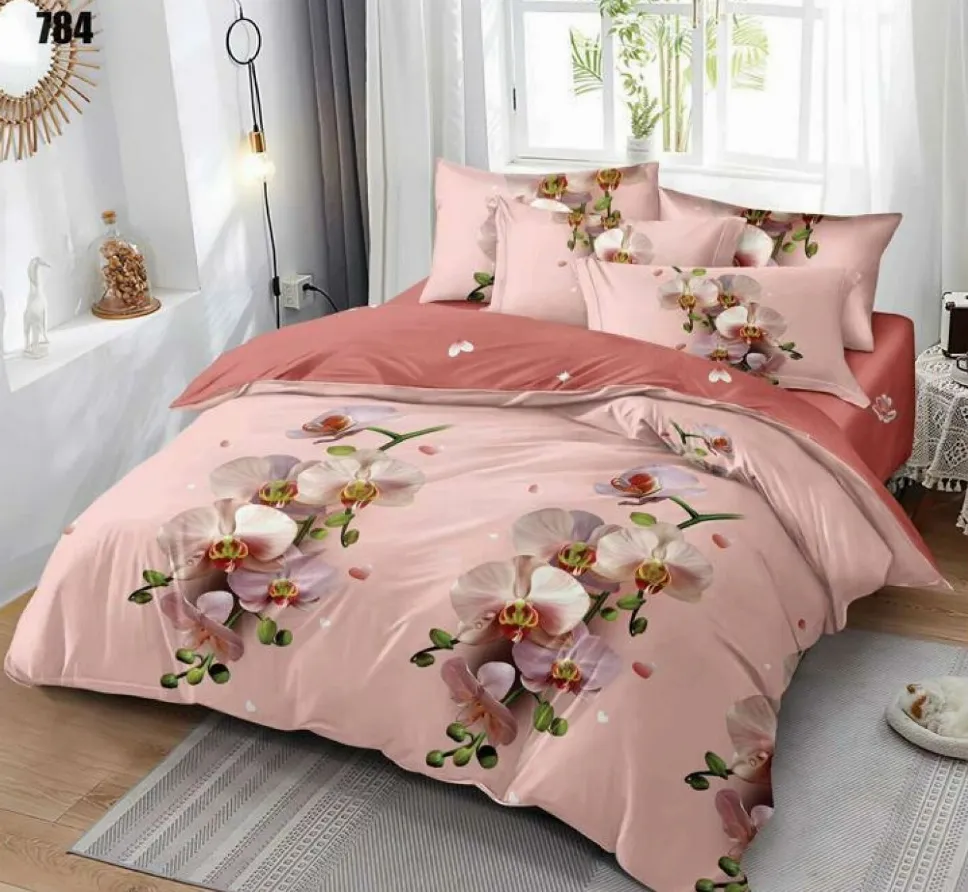 Lenjerie de pat Finet 6 piese, roz cu flori de orhidee delicate-LP784 - Descoperă confortul și rafinamentul oferite de acest set de lenjerie de pat din finet, format din 6 piese. Colecția este realizată dintr-un material textil tratat special, conferind țesăturii o senzație moale la atingere și o durabilitate remarcabilă în timp.