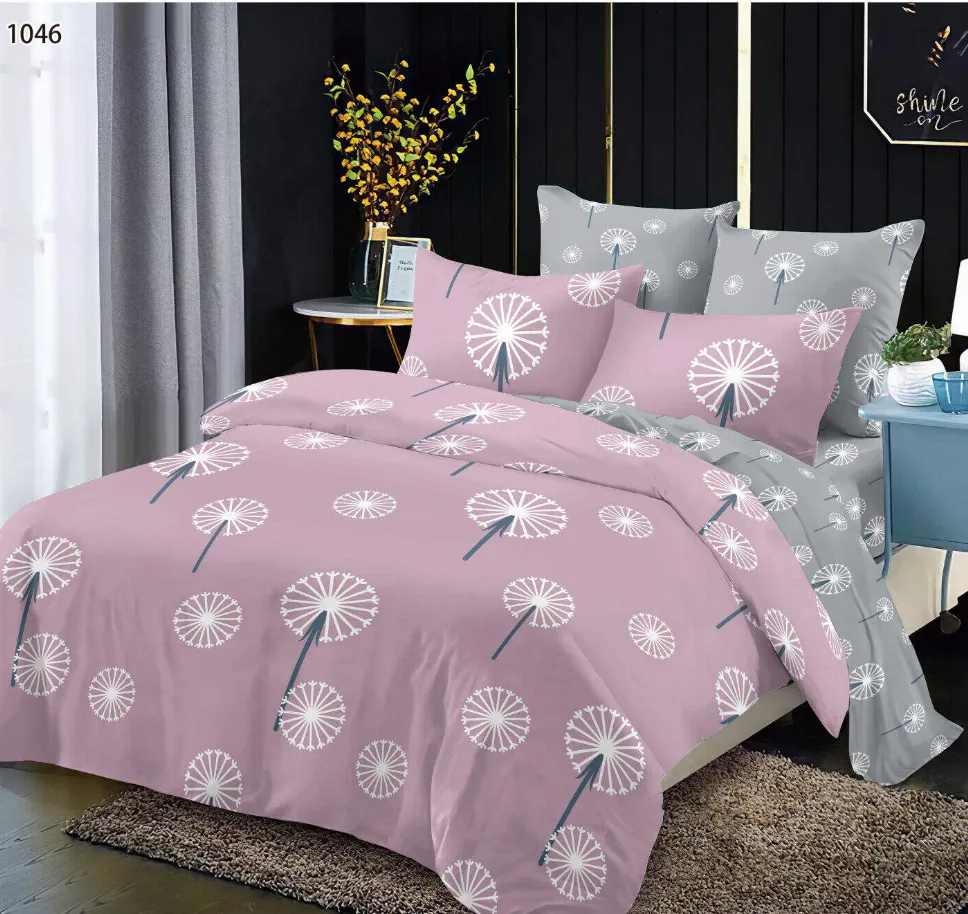 Lenjerie de pat Finet 6 piese, roz cu păpădii albe și gri-LP1047 - Descoperă confortul și rafinamentul oferite de acest set de lenjerie de pat din finet, format din 6 piese. Colecția este realizată dintr-un material textil tratat special, conferind țesăturii o senzație moale la atingere și o durabilitate remarcabilă în timp.