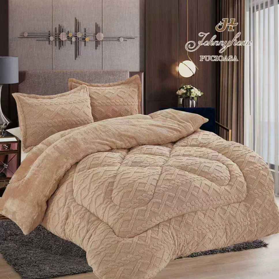 Învăluie-te în căldură și confort suprem cu pilota Pilota groasa cocolino cu blanita, bej cu model impletit-RD2. Realizată dintr-un material Cocolino pufos și incredibil de moale la atingere, această pilotă este alegerea perfectă pentru a transforma nopțile reci în momente de relaxare totală și pentru a adăuga un strop de stil dormitorului tău.