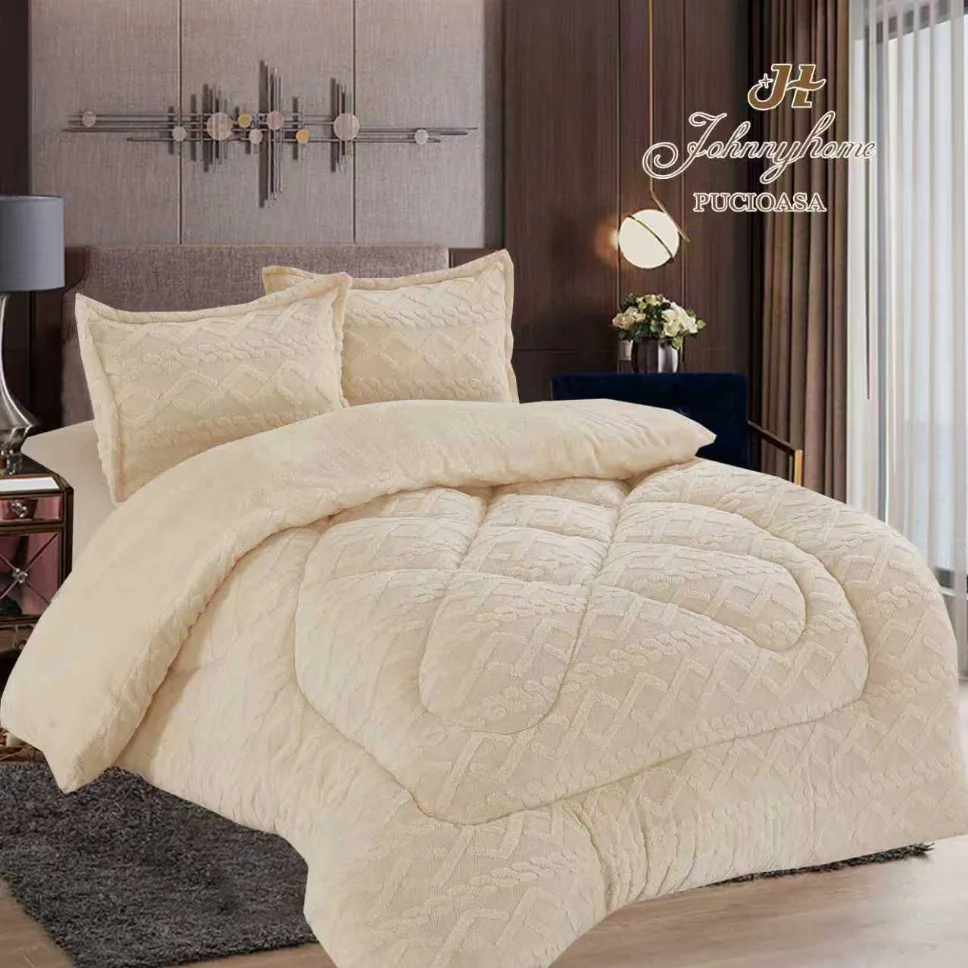 Învăluie-te în căldură și confort suprem cu pilota Pilota groasa cocolino cu blanita, crem cu model impletit-RD7. Realizată dintr-un material Cocolino pufos și incredibil de moale la atingere, această pilotă este alegerea perfectă pentru a transforma nopțile reci în momente de relaxare totală și pentru a adăuga un strop de stil dormitorului tău.