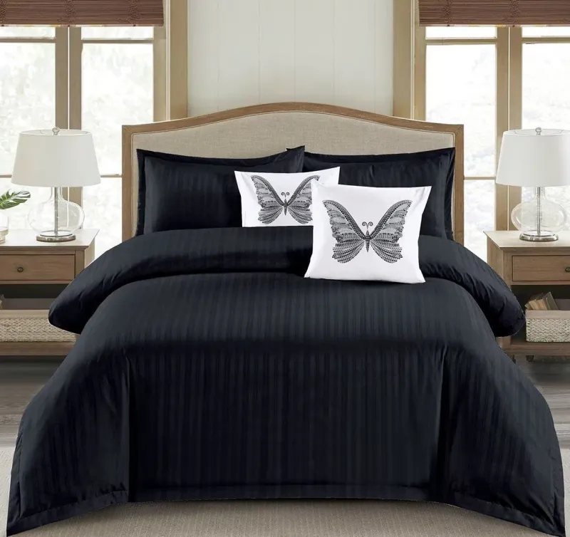 PRIMAVARA Lenjerie de pat Damasc cu Elastic, Pat 2 Persoane, 6 Piese,Negru-PD11 + CADOU