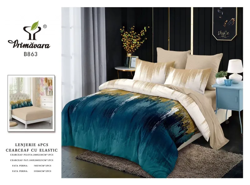 Descoperă setul Lenjerii de pat Finet 6 piese cu Elastic-FEL163, partenerul tău ideal pentru un somn profund și relaxant. Creat dintr-un material special, plăcut la atingere și rezistent, acest set este conceput pentru a-ți aduce confort și a înfrumuseța aspectul dormitorului tău.